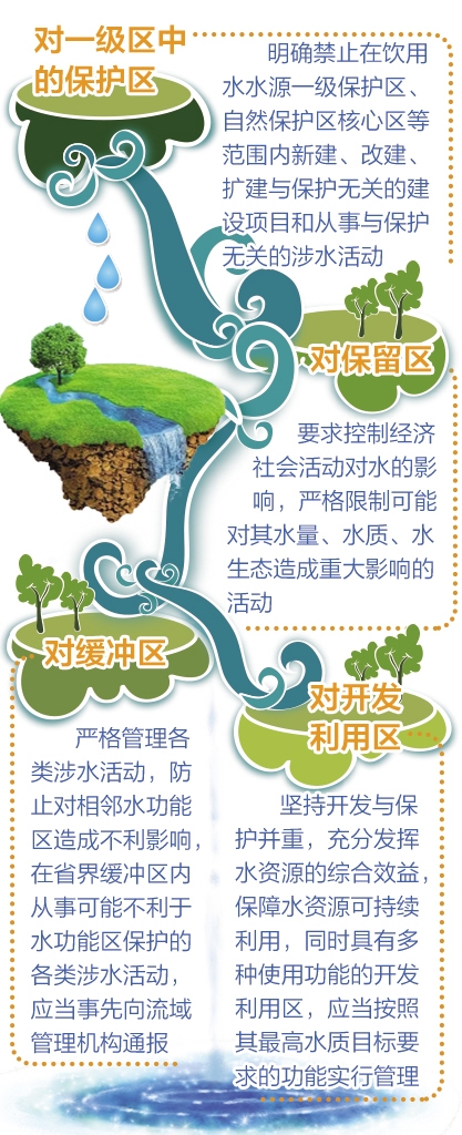 據(jù)介紹,原《水功能區(qū)管理辦法》對水功能區(qū)分類管理的規(guī)定比較簡單,修訂后的辦法將國務(wù)院批復(fù)的全國重要江河水功能區(qū)劃的要求寫入,對兩級不同類別的水功能區(qū)的管理逐一明確要求。